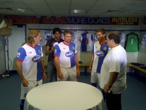 I must say I like the new kit, a very striking colour of blue. They do look a little … tight fitting? Not exactly designed for most Blackburn men